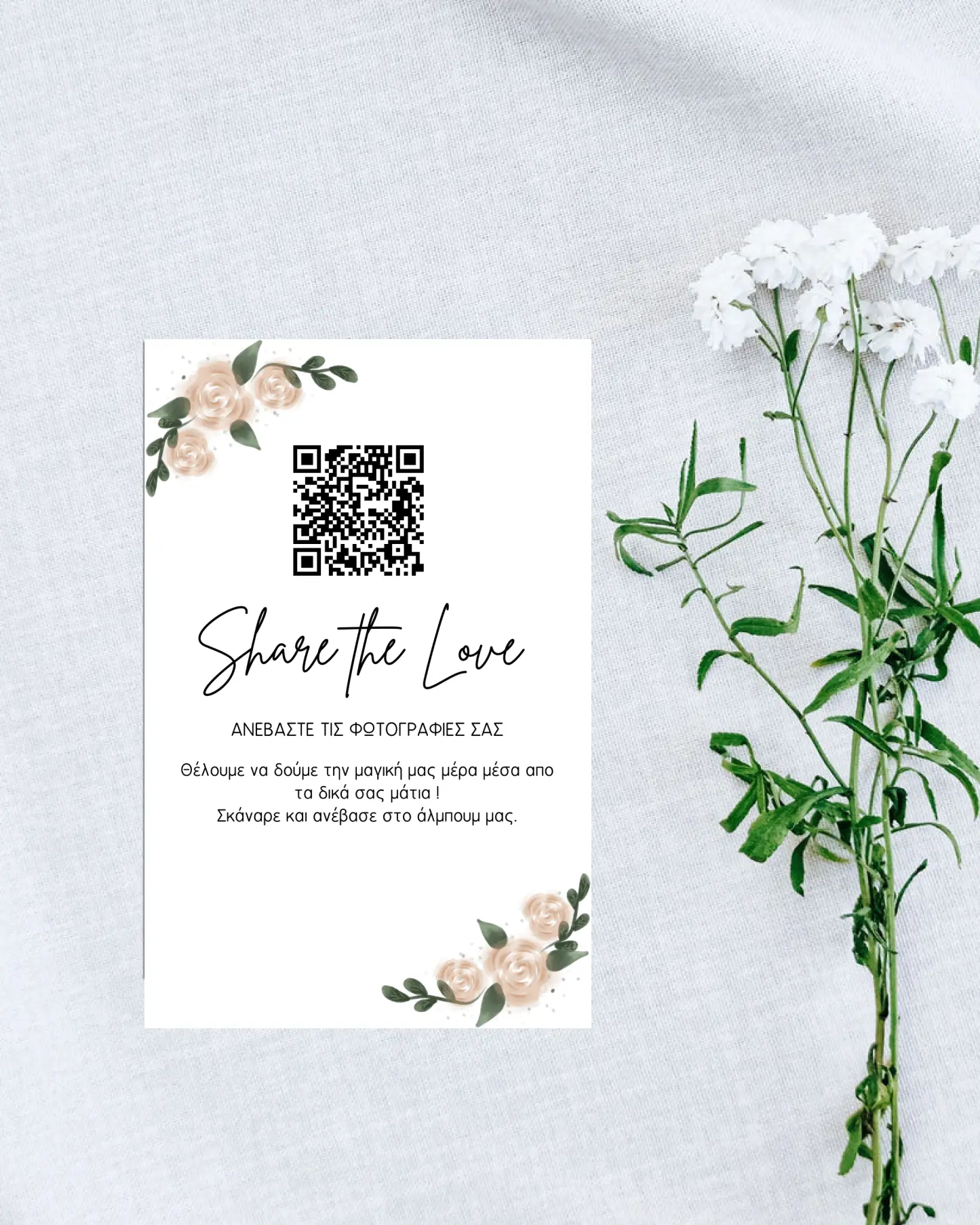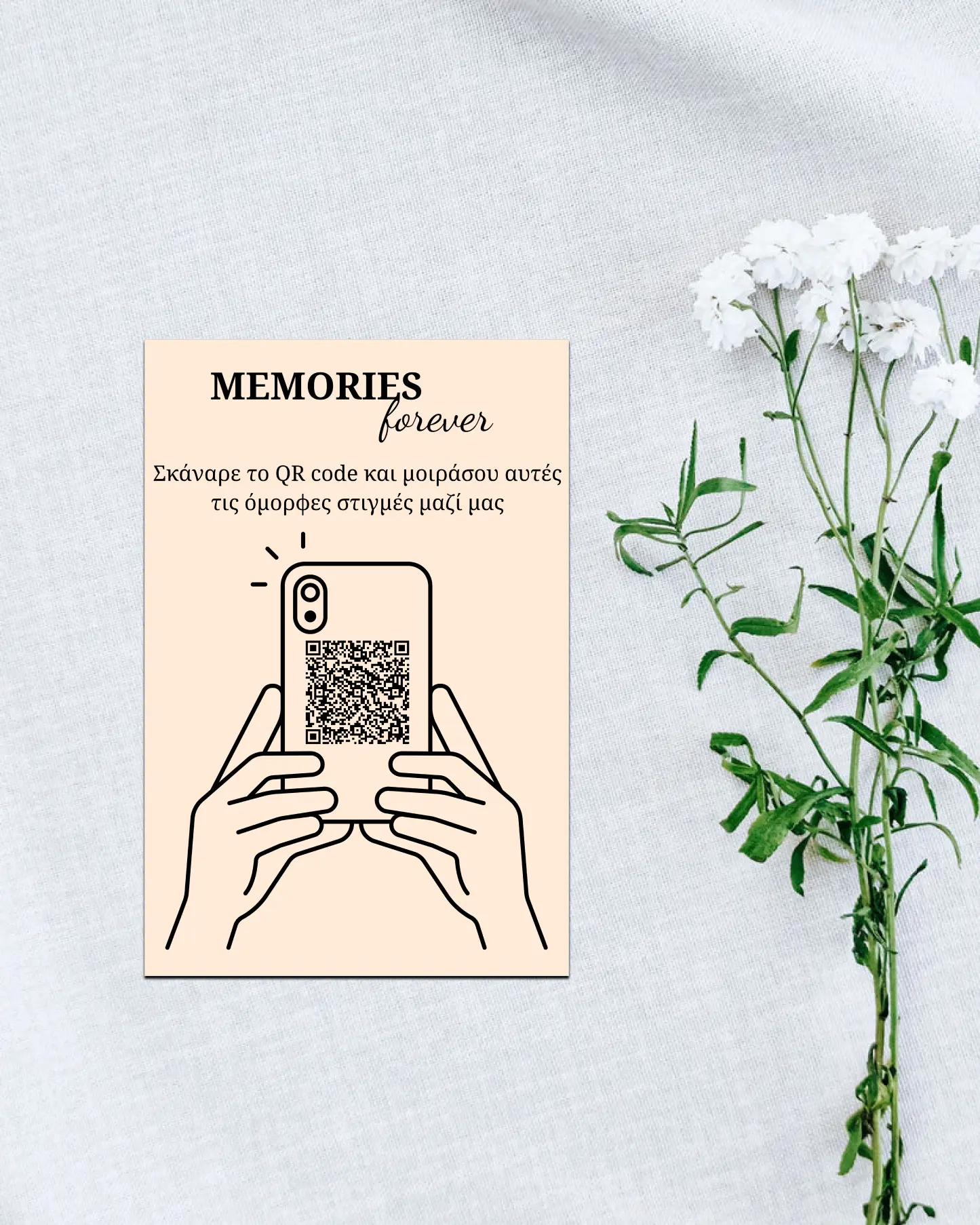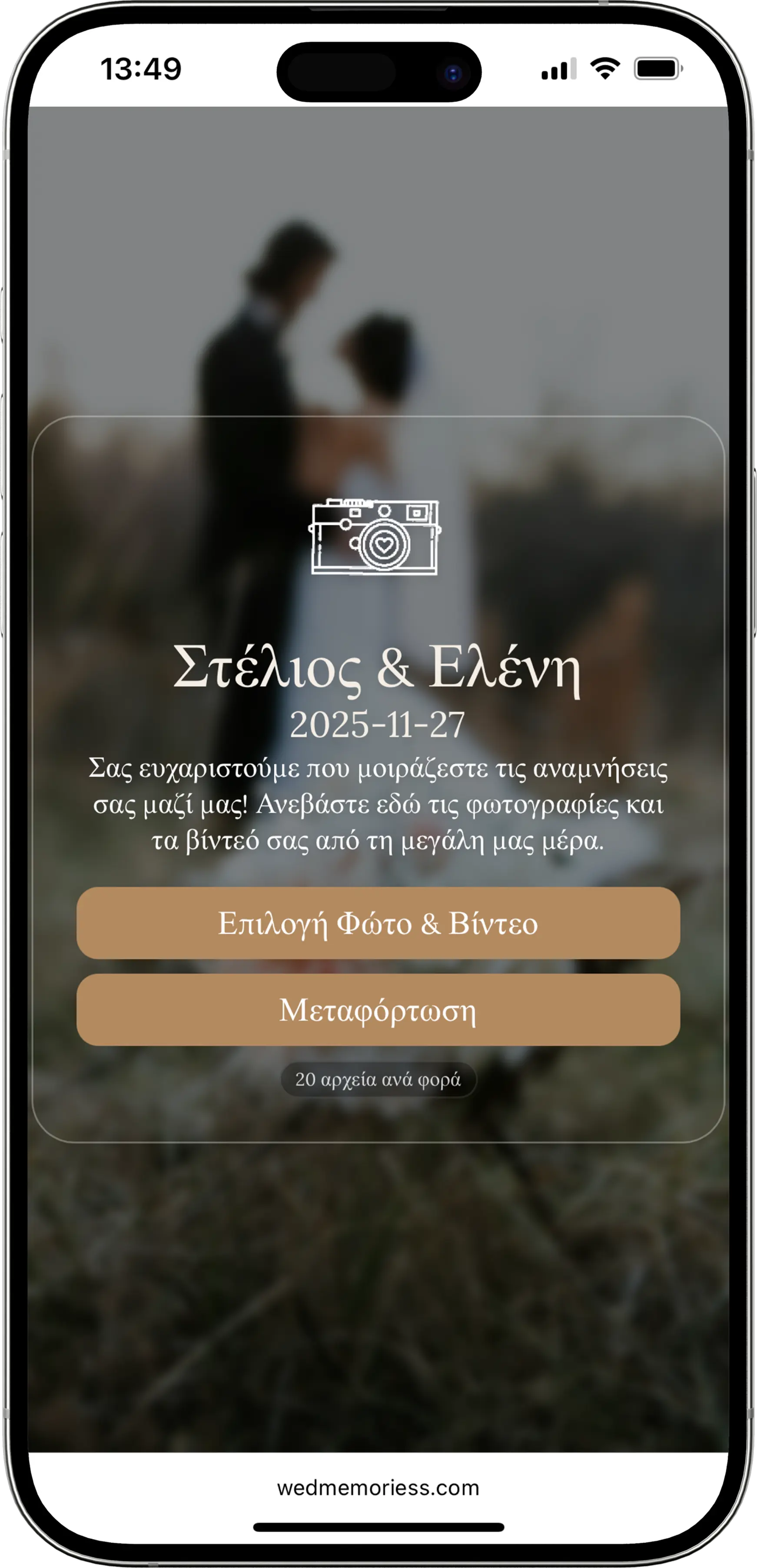Χωρίς εφαρμογή. Οι καλεσμένοι σκανάρουν το QR και ανεβάζουν άμεσα.