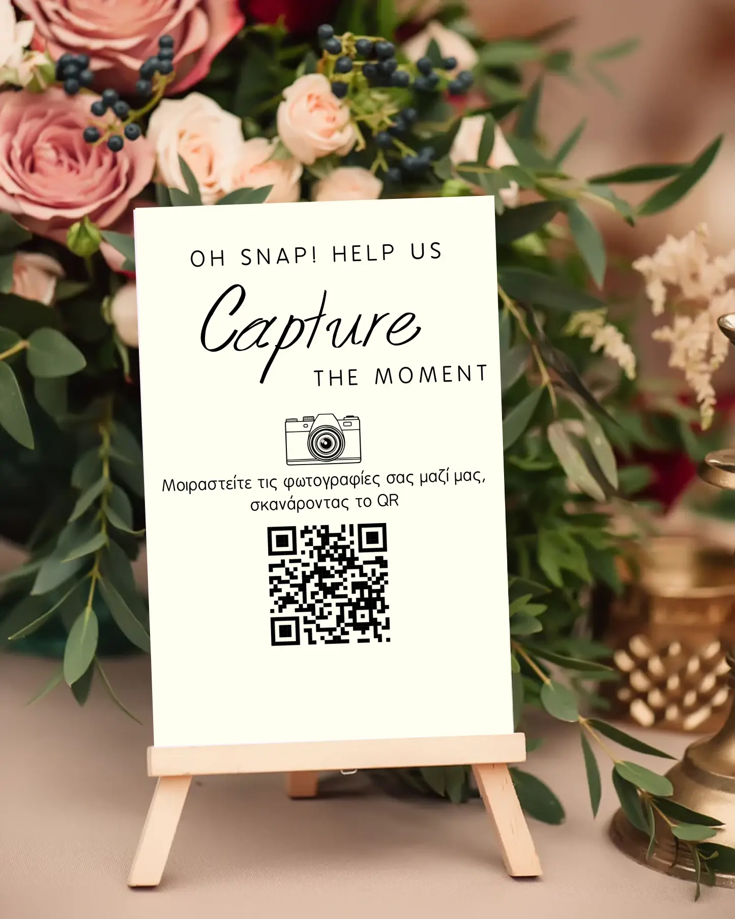 Οι καλεσμένοι σας ανεβάζουν φωτογραφίες & βίντεο εύκολα, απλώς σκανάροντας ένα QR Code. Ζήστε ξανά την μεγάλη σας μέρα μέσα από τα μάτια των αγαπημένων σας.