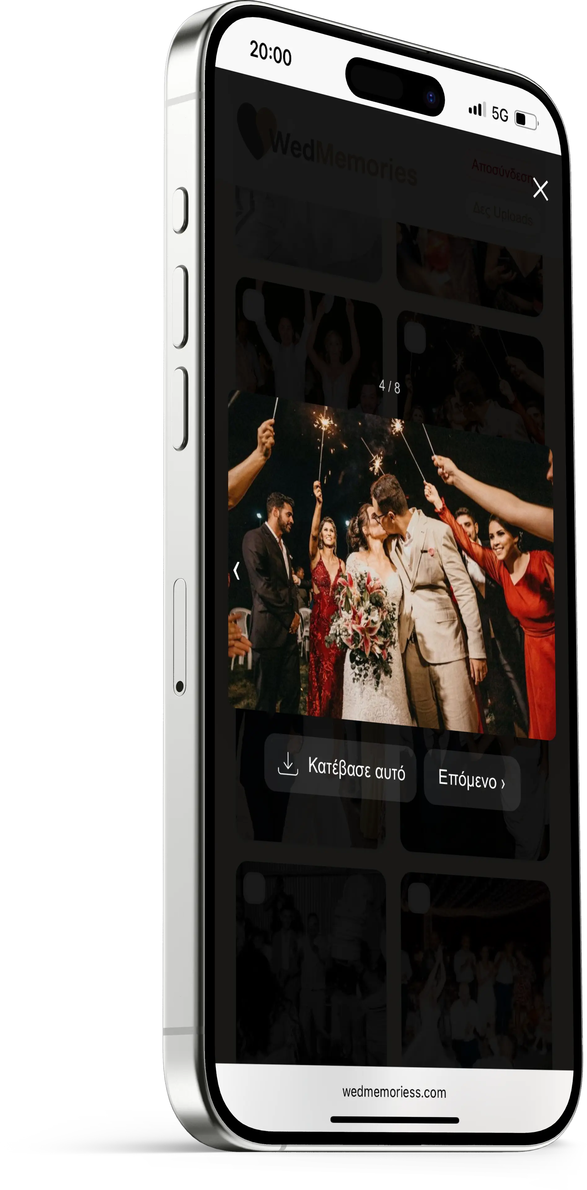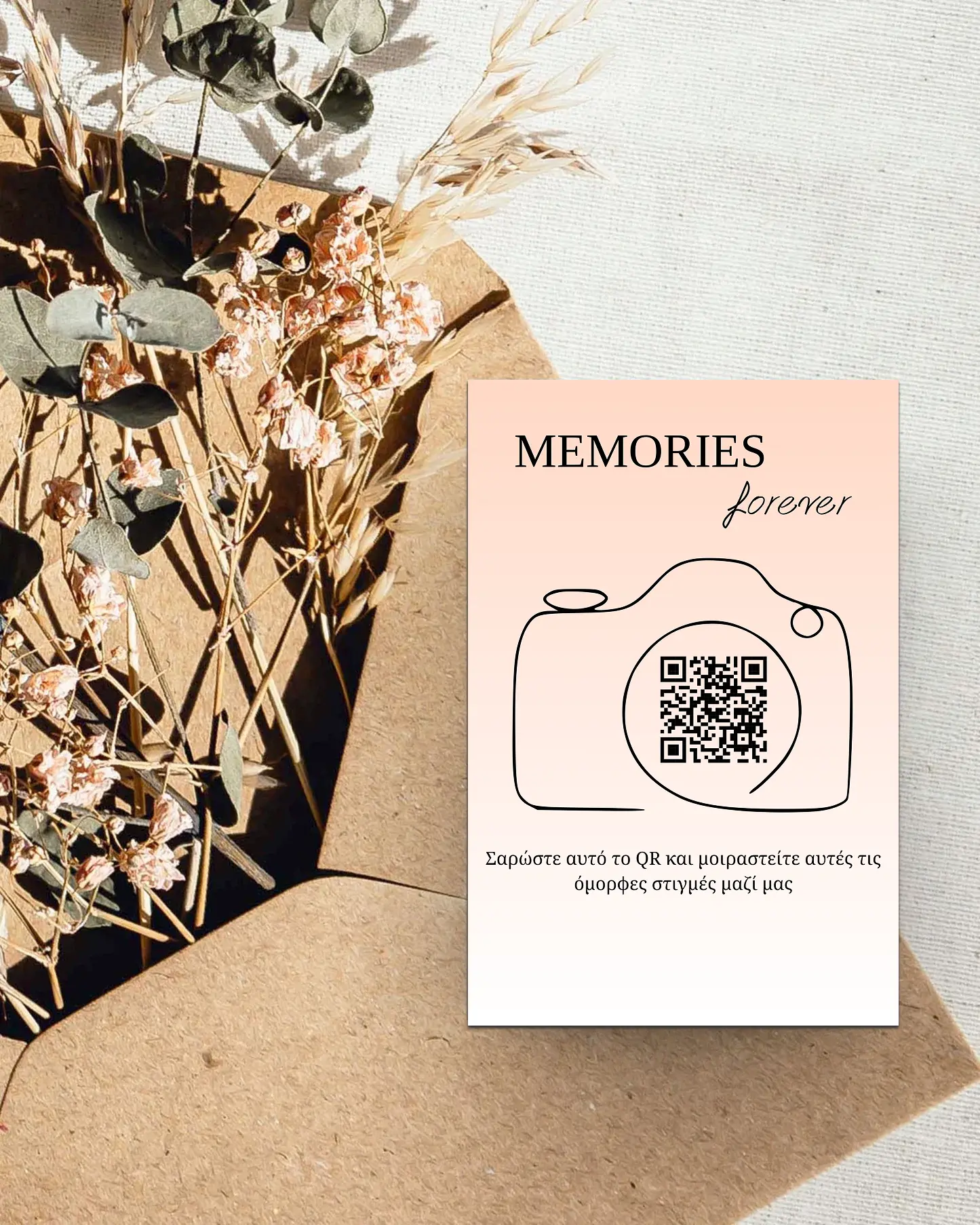 Χωρίς εφαρμογή. Οι καλεσμένοι σκανάρουν το QR και ανεβάζουν άμεσα.