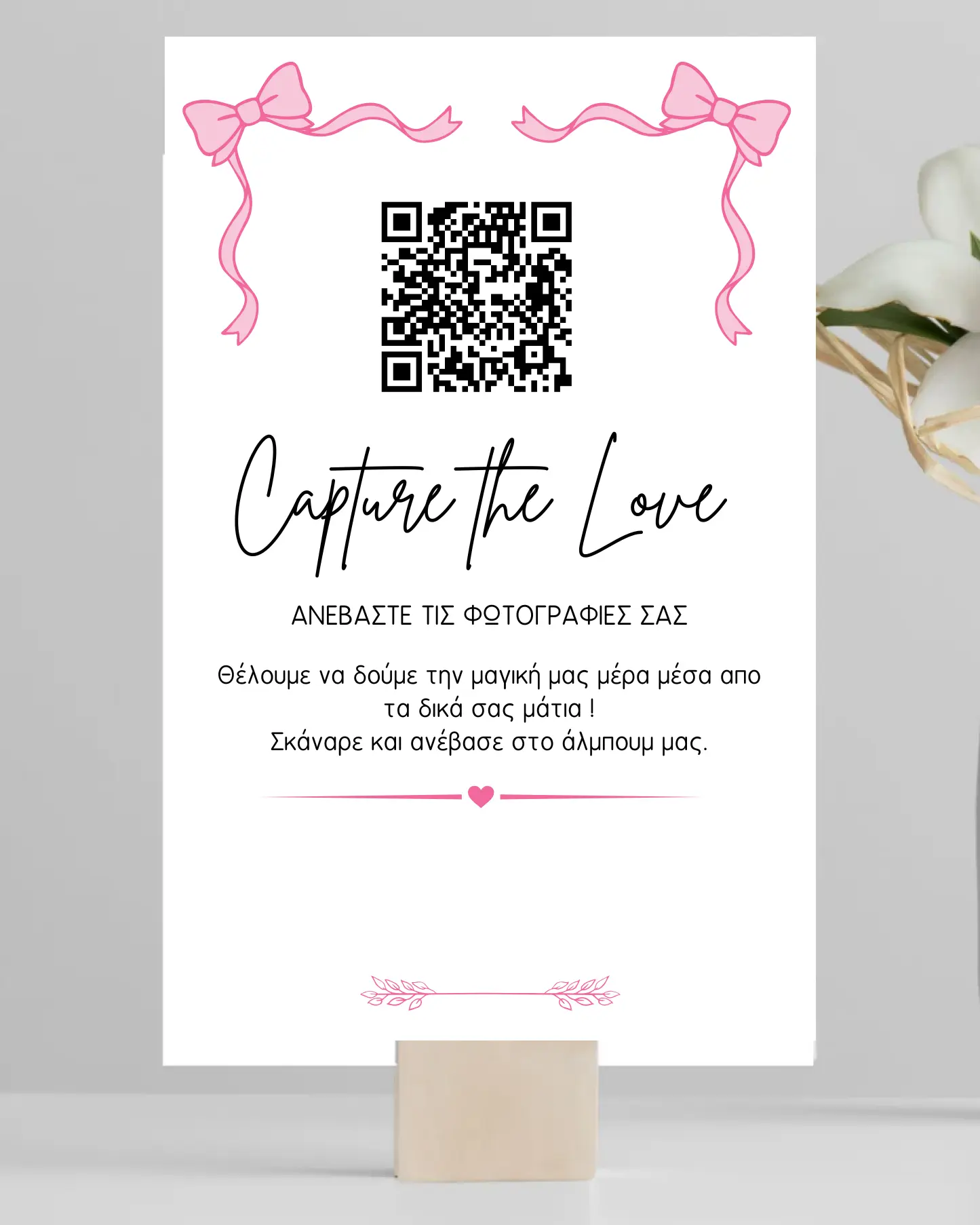 Οι καλεσμένοι σας ανεβάζουν φωτογραφίες & βίντεο εύκολα, απλώς σκανάροντας ένα QR Code. Ζήστε ξανά την μεγάλη σας μέρα μέσα από τα μάτια των αγαπημένων σας.